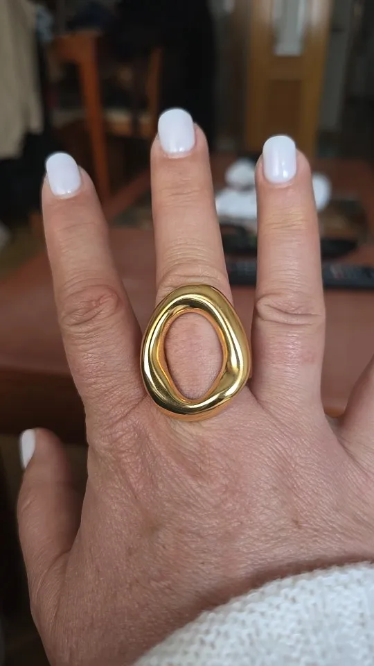 Dale un toque artístico y sofisticado a tu look con este anillo geométrico. Su forma orgánica e irregular captura la esencia del diseño contemporáneo, ideal para quienes buscan destacar con estilo. Disponible en tonos dorado y plateado, es perfecto para complementar atuendos casuales o elegantes, añadiendo un brillo único a cada movimiento.