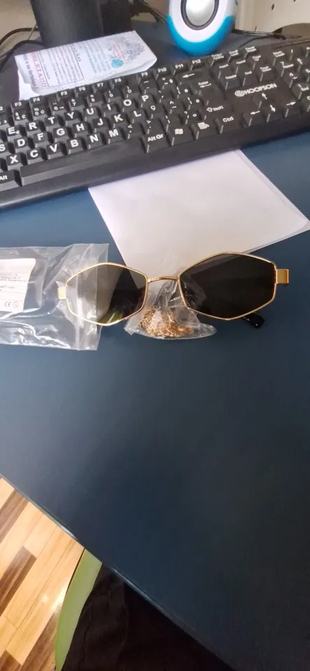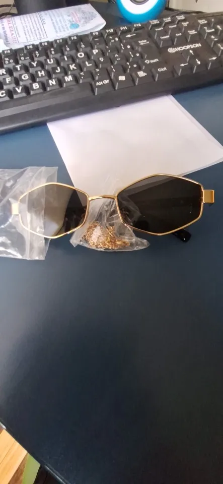 Revive el encanto de épocas pasadas con estas gafas de sol de estilo antiguo. Su forma geométrica única y montura metálica dorada evocan la elegancia retro, mientras las lentes oscuras garantizan protección solar con estilo. Ideales para fashionistas que buscan destacar con una vibra chic y atemporal.