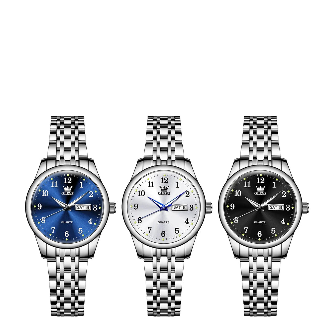 Elige la combinación perfecta entre elegancia y practicidad con este reloj elegante de OLEVS. Su diseño clásico con números arábigos y correa metálica se adapta tanto a entornos profesionales como casuales. Disponible en varios colores de esfera (azul, blanco o negro), incorpora función de día y fecha para una experiencia completa.